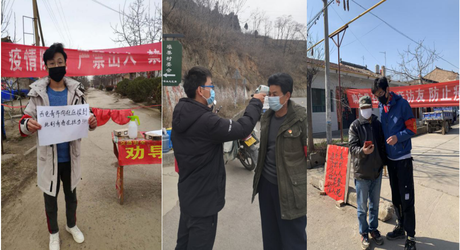 白莉婷,计科院18级硕士,家住咸阳兴平市。疫情期间,白莉婷同学积极响应国家号召,报名参加了镇上的大学生志愿者协助防疫工作。每天天亮,就开始在村上或者镇上的防疫站点值班工作,负责检查并登记来往人员与车辆,对来往人员进行体温测量和车辆消毒等工作,并利用自己空余时间为村里防疫工作进行资料整理和信息录入等。在北方,二月天的温差还是比较大的,西北风吹,寒意满满,可白莉婷同学却说:“能够为防疫工作出一份力,我每天都是暖暖的。”