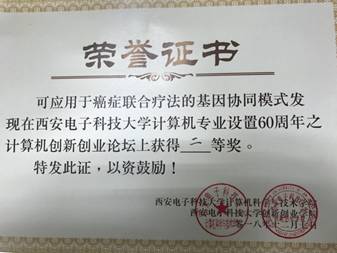 3.研究所师生团队研发的《可应用于癌症联合疗法的基因协同模式发现》系统,在best365手机版官方网站计算机专业设置60周年之计算机创新创业论坛上,获得貮等奖。