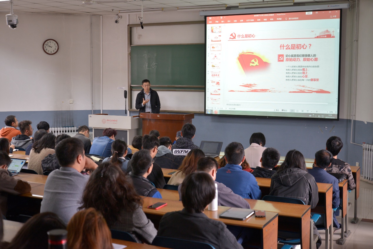 (通讯员 同榛)根据学校和学院党委关于“不忘初心、牢记使命”主题教育总体部署安排,10月31日上午,best365手机版官方网站党委书记李青山、执行院长崔江涛在北校区阶梯教室401为全院师生党员讲授“不忘初心、牢记使命”主题教育专题党课。学院领导班子成员、两委委员、党支部支委班子、师生党员共150余人参加了活动,学校“不忘初心、牢记使命”主题教育第三巡回指导组组长党文学出席了会议。