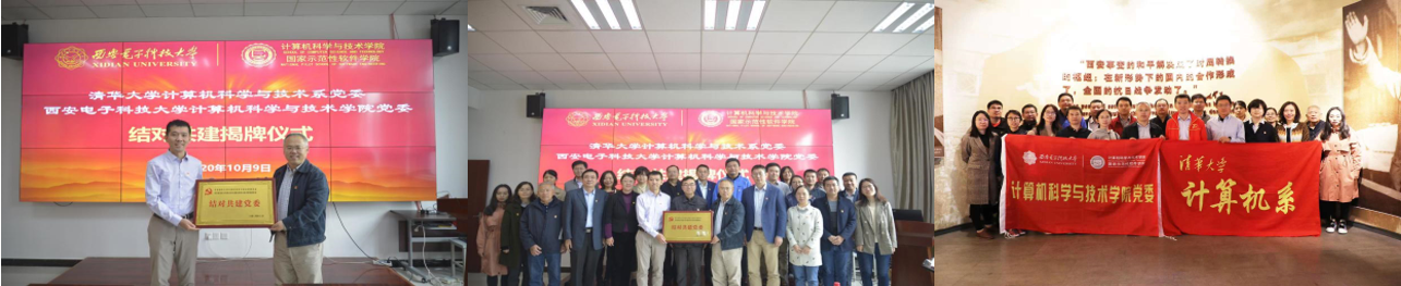 党委结对共建聚合力,党建引领共谋发展。为切实提升基层党建水平,探索基层党建新模式,计科院党委主动走出去,2020年10月与第二批“全国党建工作标杆院系”培育创建单位——清华大学计算机科学与技术系党委结对共建,举办座谈交流会暨党委结对共建揭牌仪式,并赴西安事变纪念馆开展第一次结对共建活动。以党委结对共建为契机,计科院党委将继续谋划开展多维度的共建活动,加强院校间的友谊和联系,促进党建与业务深度融合,以党建为引领促进和保障“双一流”建设。
