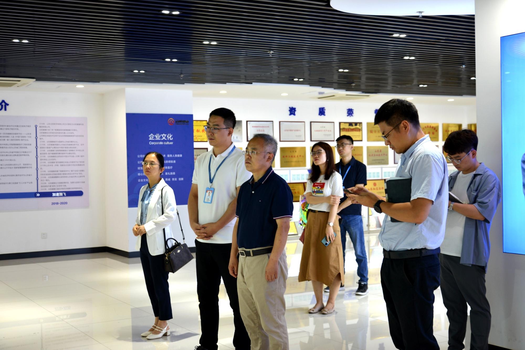 7月19日下午,学院一行前往众阳健康科技集团有限公司开展调研交流。在工作人员的引导下,学院一行集体参观了企业展厅,近距离感受众阳健康20余年间初创成长、做强做优、加速腾飞的发展历程,详细了解了企业在智慧医院、智慧健康、互联网+医疗健康、智慧医养、人工智能方面的产品体系,以案例分享形式了解了企业在打造融合民生服务和科技产业亮点标杆中的探索与实践。