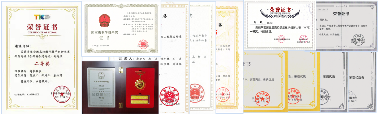 矢志创新,推动教改。在长期的一线教学工作中,谢琨同志积累了大量的经验,进行了深入的人才培养和本科教学工作的探索与实践。近五年主持教育部、省校级教改项目12项,其中省级重点项目4项,作为主要完成人参与教学改革项目8项;在CSSCI、中文核心等期刊发表教改论文9篇。作为课程负责人获首批陕西省线下一流课程1门,2021年被推荐国家级线下一流课程评选(在评)。经过长期的探索实践,教学改革成绩显著:获首届全国高校教师教学创新大赛二等奖(西电唯一),国家级教学成果奖二等奖,陕西省教学成果特等奖、一等奖、二等奖各1项,陕西省高校课堂教学创新大赛一等奖,第三届全国“互联网+”大学生创新创业大赛优秀导师奖和首届全国“互联网+”大学生创新创业大赛陕西赛区优秀导师奖,陕西省高校教师微课教学比赛三等奖,best365手机版官方网站第十二届讲课竞赛一等奖,best365手机版官方网站优秀教学质量奖一等奖等校级以上教学奖项近30项。