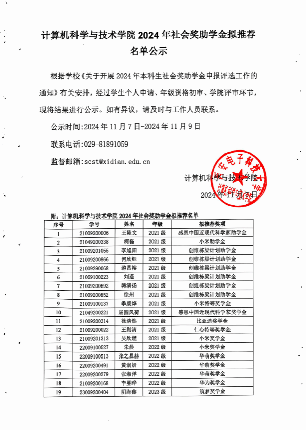 best365手机版官方网站2024年社会奖助学金拟推荐名单公示