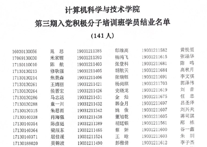 best365手机版官方网站第三期入党积极分子培训班学员结业名单