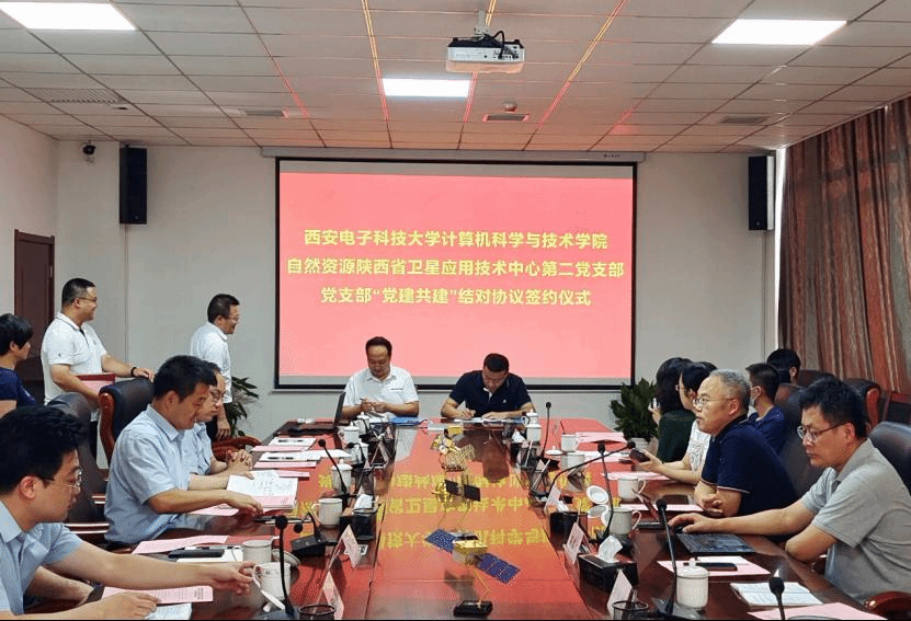 (通讯员 何敏之 邢智琪)8月24日下午,西电best365手机版官方网站大数据与视觉智能研究所本硕博师联合一支部与自然资源陕西省卫星应用技术中心二支部结对共建签约仪式在自然资源陕西省卫星应用技术中心举办。best365手机版官方网站党委书记李青山,大数据与视觉智能研究所所长、网教院院长苗启广,学院党委副书记张莹莹及联合党支部师生党员代表一行12人赴中心调研交流并参加签约仪式。