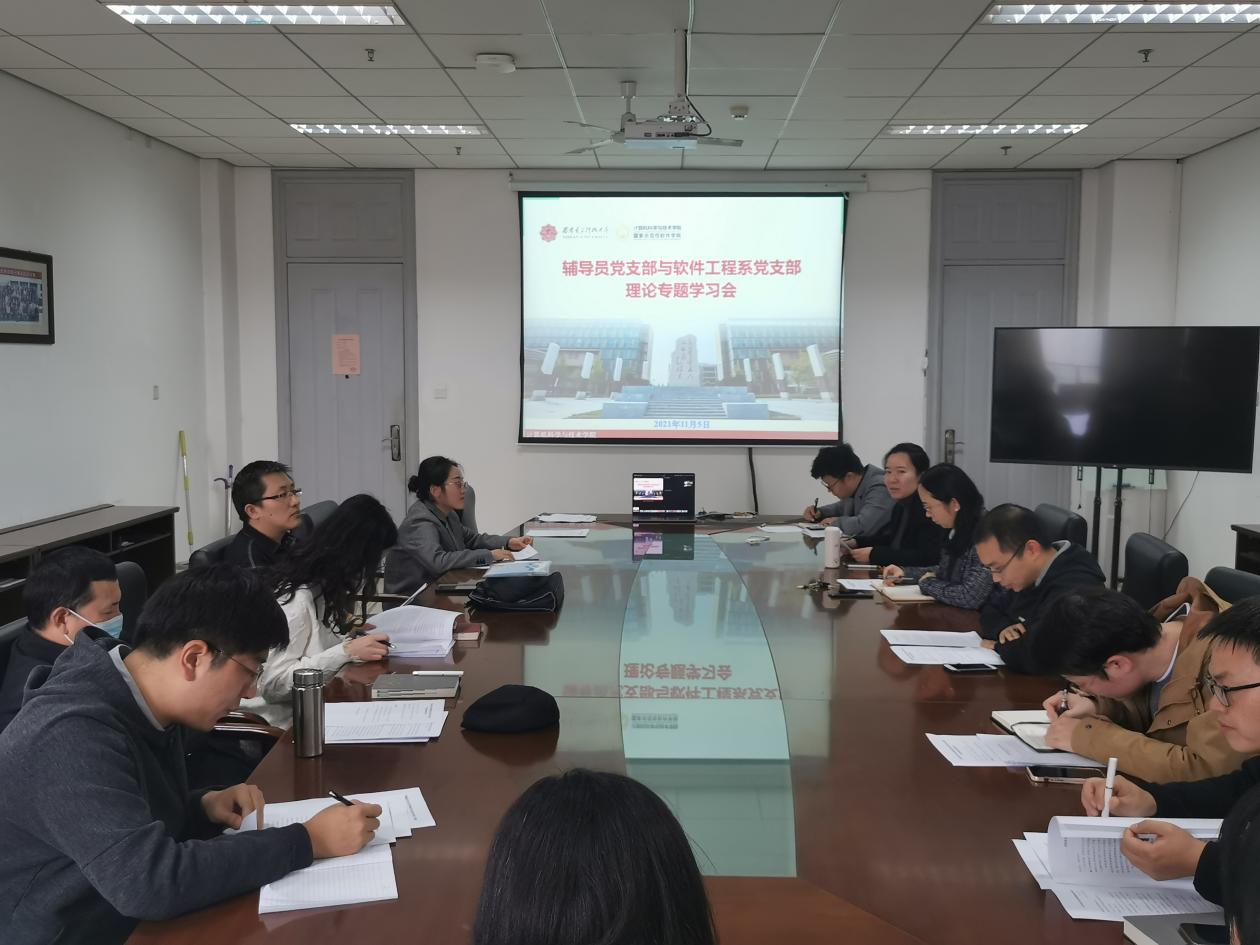 (通讯员 王牌)为促进支部联合共建,强化学生工作、课程教学、科研平台等多方力量的协同联动。11月5日下午,best365手机版官方网站辅导员党支部与软件工程系党支部在西电南校区G楼514联合召开理论专题学习会议。会议就习近平总书记在纪念辛亥革命110周年大会上的讲话、习近平总书记在中华人民共和国恢复联合国合法席位50周年纪念会议上的讲话展开学习,并立足工作实际就课程思政、学业指导、学科竞赛等方面工作展开交流讨论。会议由辅导员党支部书记梁双杰主持,支部全部成员“线上+线下”参与会议。