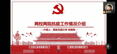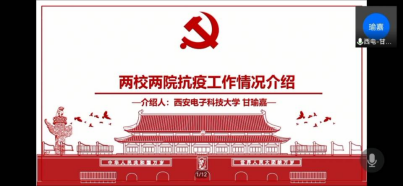 然后,西电的甘瑜嘉和西交的佘晓亮分别介绍了两校两院系党支部的抗疫工作情况。西安疫情当前,各高校均采取了严格有效的措施,西电计科院计算理论与技术研究所本硕博师第二联合党支部迅速响应学校和学院党委号召,多名支部党员、入党积极分子加入学院志愿队,担任核酸检测志愿者、出入证志愿者等,以实际行动为同学们服务。西交南洋书院师生联合第三党支部快速响应,迅速发布了有关疫情防控的倡议书,组建书院抗疫志愿先锋队,组织“出入证志愿者、食堂志愿者、核酸检测志愿者”志愿服务队,学院老师、辅导员坚守一线,积极参与,为疫情防控做出贡献!