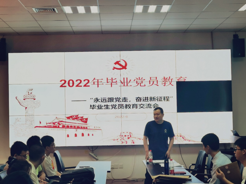 (通讯员 张明婕)在2022届毕业生即将告别学校之际,为了进一步加强党员教育,落实立德树人根本任务,以党建带动人才培养传帮带,6月18日上午,计科院计算生物信息学研究所本硕博师联合党支部在主楼二区319会议室举办了“永远跟党走,奋进新征程”毕业生党员教育活动。活动覆盖了支部全体党员同志,旨在激励毕业生党员牢记党员责任,强化爱党爱国教育,并积极发挥毕业生党员的先锋模范作用。