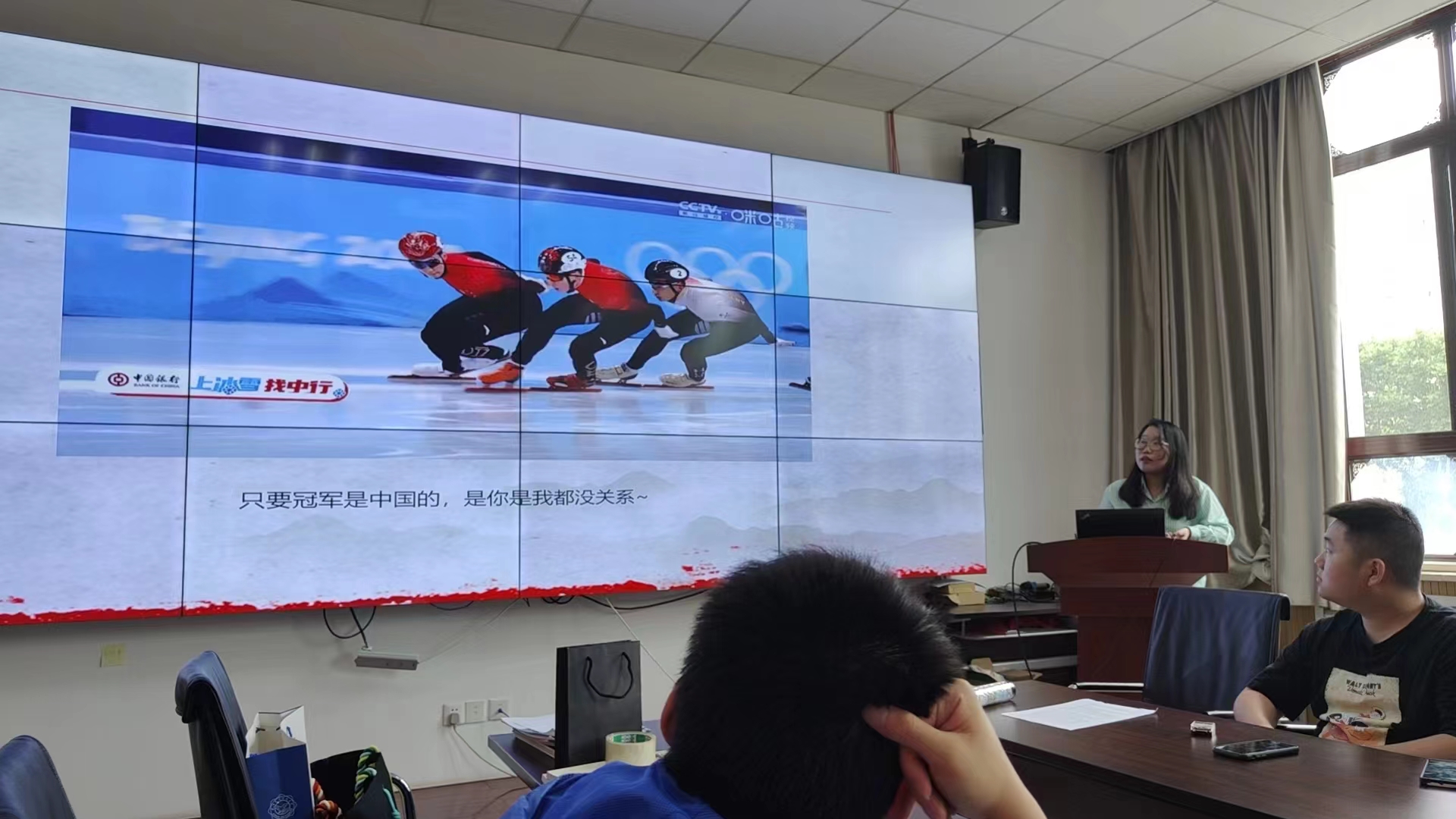 硕士毕业生党员杨瑾以自己对体育运动的热爱为引,分享了体育运动如何激发爱国情怀的心得体会。她围绕一些耳熟能详的奥运冠军展开交流,向大家讲述了体育小将勇于挑战的拼搏精神以及运动老将坚持不懈追求梦想的奋斗精神,分享了他们在追求卓越的过程中所付出的努力和坚持。她谈到,体育运动所蕴含的团结协作、坚持不懈等精神,同样可以激励我们在其他领域中追求卓越,为国家和社会做出贡献。