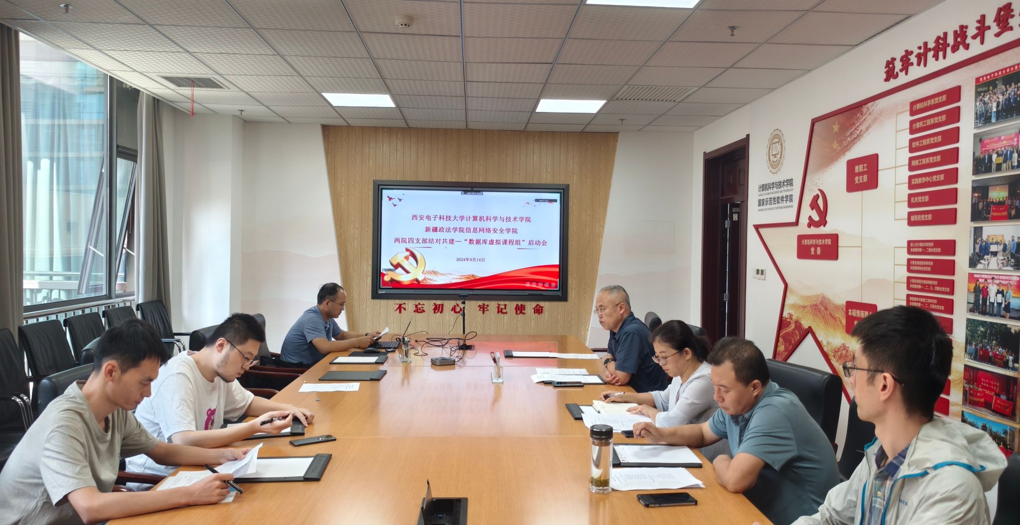 与会成员围绕支部党建、兵团精神、胡杨精神和三系精神传承互鉴等方面开展讨论,并就知识图谱、实践平台、编程思想等方面开展讨论,达成了数据库虚拟课程组建设共识。本次“数据库虚拟课程组”启动会标志着西电计科院和新政信网院两院四支部结对共建协议有效落实,在合作方式、课程建设、课程思政、校企合作、实践能力提升等方面取得了良好的进展,为促进党建与业务融合推进奠定了基础。