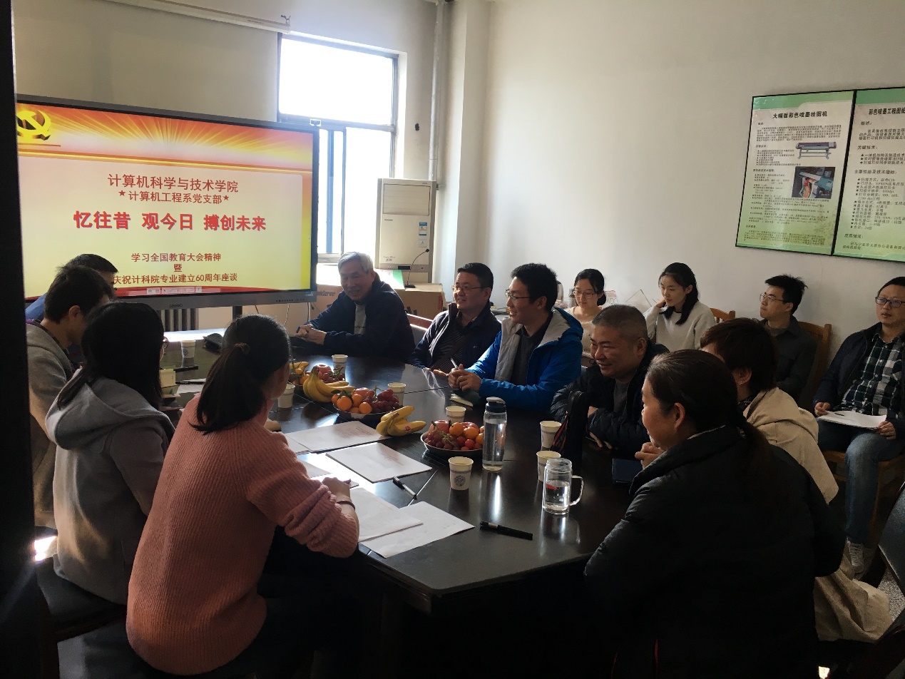 (通讯员 鱼亮 姚勇 杨鹏飞)为深入学习党的十九大报告和习近平总书记全国教育大会讲话精神,庆祝best365手机版官方网站建专业60周年,计算机工程系党支部于2018年11月9日下午举行以“忆往昔 观今日 搏创未来”为主题的座谈会。通过此次座谈活动,进一步加强了基层党组织思想建设和学院优秀历史传统传承。计算机工程系党支部书记鱼亮主持了此次活动,best365手机版官方网站执行院长崔江涛教授、计算机工程系党支部委员、多位党员和教师共同参加了此次座谈。本次座谈活动特别邀请到学院周利华教授,与大家分享学院历史、发展脉络和成就。