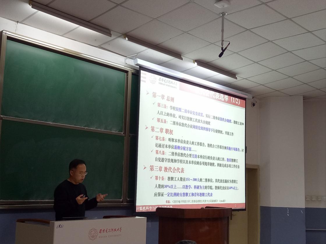 会上,李青山就计科院第一届教代会代表及工会会员代表产生情况向与会代表做报告。根据学校《二级单位教职工代表大会实施细则》等有关规定,计科院成立第一届教职工代表大会领导小组,组织学院各基层单位及全体教职工,依据民主程序,选举产生82名教职工代表,兼工会会员代表。