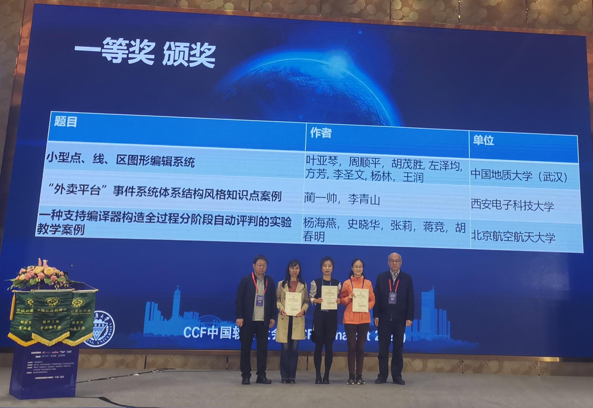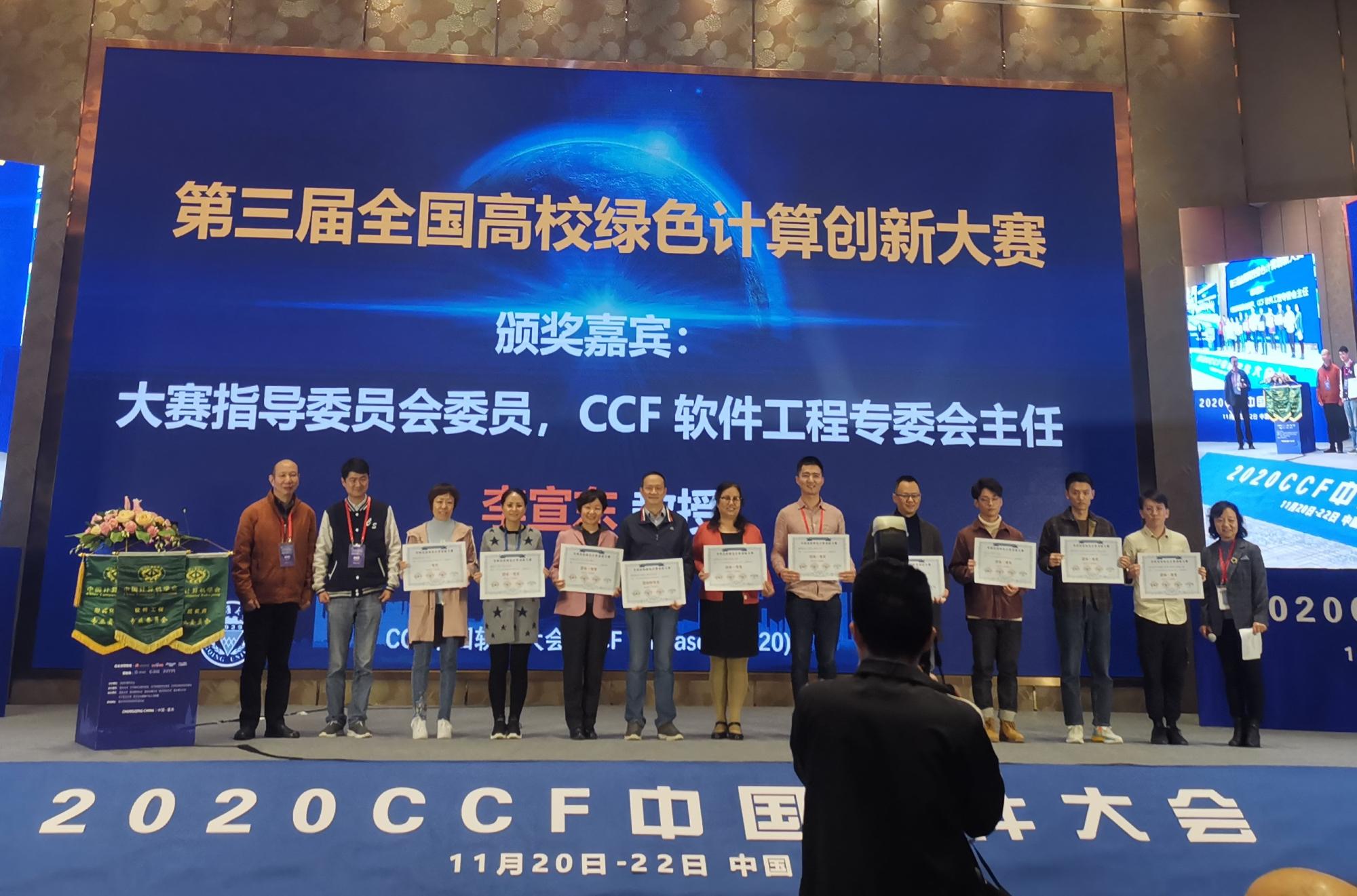同时,在大会举办的一系列比赛与竞赛中,我校教师与学生也取得了佳绩。蔺一帅博士负责的题为《“外卖平台”事件系统体系结构风格知识点案例》获得大会软件工程实践教学案例比赛一等奖,由李贺老师指导的参赛队伍获得第三届全国高校绿色计算创新大赛一等奖。