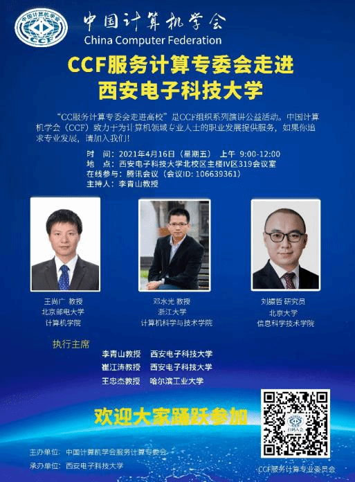 同时,由best365手机版官方网站承办的CCF服务科学国际会议(CCF ICSS 2021)将于5月14日至16日在我校举行,为确保会议顺利召开,学院会务组也将借本次活动与服务计算专委会一道举行ICSS 2021筹备会。