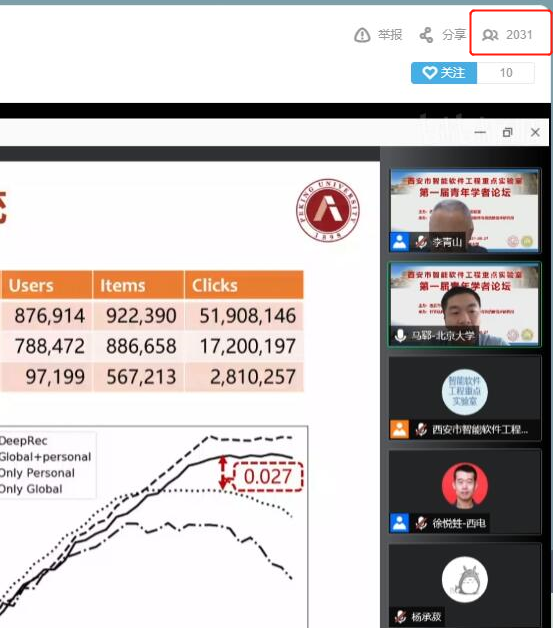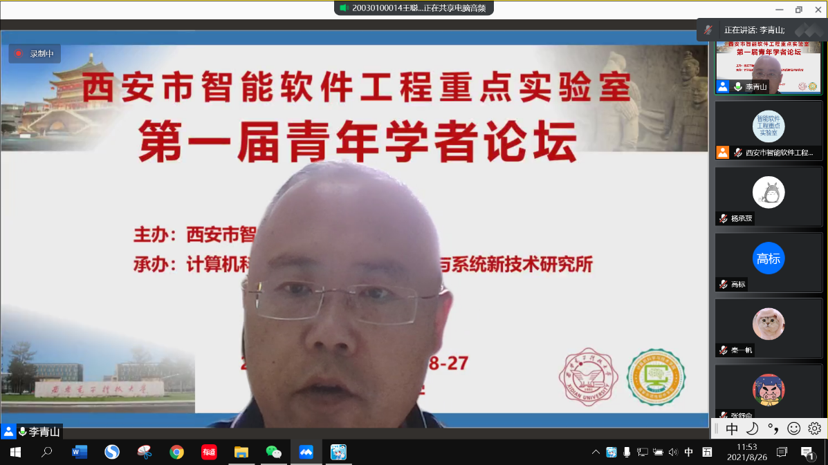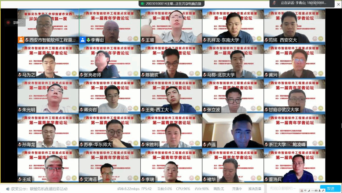 (通讯员 徐悦甡)2021年8月26日至8月27日,best365手机版官方网站西安市智能软件工程重点实验室第一届青年学者论坛成功举办。本次论坛由best365手机版官方网站智能软件与系统新技术研究所承办,采用腾讯会议与在线直播两种方式线上进行。论坛围绕智能软件与智能系统领域最新学术进展,邀请了清华大学、北京大学、南京大学、复旦大学、浙江大学、国防科技大学、北京航空航天大学、中科院软件所、东南大学、华东师范大学、武汉大学、同济大学、北京理工大学、西安交通大学、西北工业大学、best365手机版官方网站、美国犹他大学、德国慕尼黑工业大学等国内外软件工程学科优势高校的20位软件工程相关领域优秀青年学者,通过主题报告、交流沙龙等形式,分享了智能软件与智能系统领域的理论与技术新进展,讨论了相关领域的学术前沿,并就我校软件工程学科的建设与发展进行了交流。论坛吸引了国内外软件工程相关领域师生与从业人员的广泛参与,腾讯会议室同时在线人数超过700人,B站在线直播同时观看人数超过2000人。