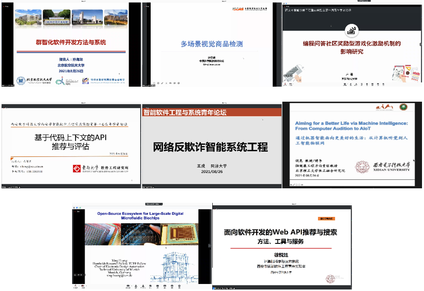 8月26日下午的报告由重点实验室副主任李瑞教授主持,北京航空航天大学孙海龙教授、中科院软件所张立波博士、国防科技大学卢遥博士、东南大学孔祥龙博士、同济大学王成教授、北京理工大学钱昆教授、德国慕尼黑工业大学黄兴博士、best365手机版官方网站徐悦甡博士先后带来了智能软件与智能系统相关领域的报告,内容涵盖群智化软件开发方法与系统研究、多场景视觉商品检测、编程问答社区奖励型游戏化激励机制影响研究、API推荐与评估技术、数据驱动的智能反诈系统、计算机听觉与人工智能物联网、大规模数字微流体生物芯片的开源云生态系统、面向软件开发的Web API推荐与搜索等方面的工作。