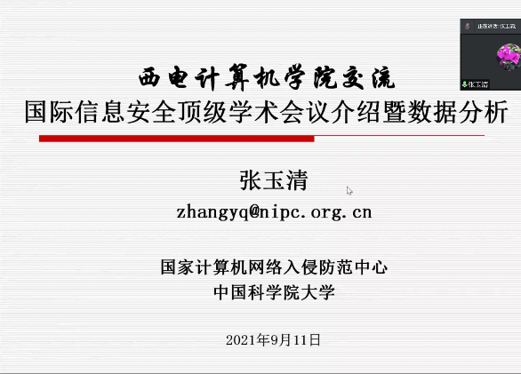 (通讯员 董学文)为迎接我校九十周年华诞,进一步增加院友与学院的联系,促进学术交流与合作,拓宽师生学术视野,扩大学院学术影响力,2021年9月11日至9月12日,我院举办了best365手机版官方网站计算机网络与物联网工程研究所院友学术论坛。本次论坛由陕西省网络与系统安全重点实验室主办,计算机网络与物联网工程研究所承办,以线上线下结合的形式开展。论坛围绕计算机网络安全领域的最新学术进展,邀请了中国科学院大学、西安交通大学、中央财经大学、上海大学、兰州理工大学、河南工业大学等国内计算机学科优势高校的网络与安全领域青年教师进行学术交流,并通过主题报告、交流沙龙的形式分享了智能计算机网络和安全领域的理论和技术新进展,加强了实验室学术前沿交流,扩大了我校计算机学科的知名度与影响力。论坛吸引了国内外计算机网络和安全领域相关师生和从业人员的广泛参加,论坛参与人次超500。