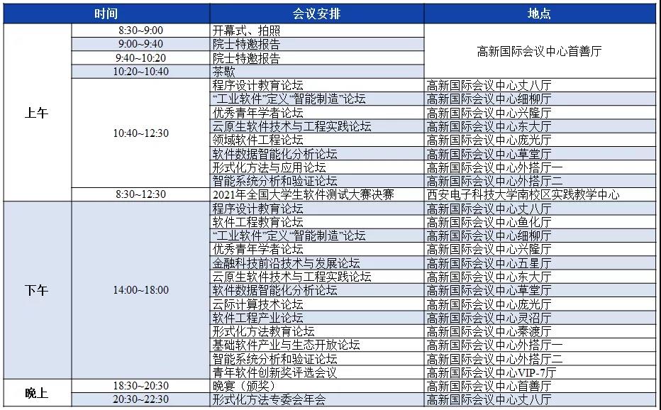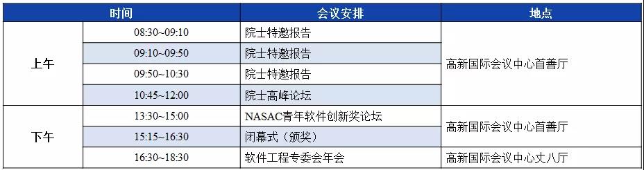 2021CCF中国软件大会将组织特邀报告、院士高峰论坛、青年学者论坛、论文专刊论坛、顶会顶刊论坛、学术论坛、工业论坛、教育论坛、学科竞赛答辩和软件研究成果展示等30余个不同类型的活动。大会将邀请10余位软件及相关领域中国科学院院士与中国工程院院士,为大会带来特邀报告并参加院士高峰论坛等活动。目前已邀请参会的两院院士包括中国科学院院士林惠民,中国科学院院士陶文铨,中国科学院院士梅宏,中国科学院院士吕建,中国科学院院士李应红,中国工程院院士廖湘科,中国科学院院士杨孟飞,中国科学院院士管晓宏,中国科学院院士王怀民,中国科学院院士冯登国,中国工程院院士孙凝晖等。