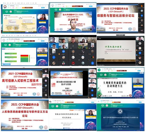2021年12月24日,CCF中国软件大会(CCF ChinaSoft)正式开幕,作为大会会期(12月24日~26日)首日,主要进行各项论坛活动,包括顶会顶刊论坛、优秀博士生论坛、百答论坛、微服务与智能运维论坛等21个开放性论坛,以及软件众测论坛和CCF系统软件专委会年会两个闭门会议,涵盖专刊类论坛、学术类论坛、工业类论坛与教育类论坛等四大类论坛活动。专刊类论坛主要包括大会设立的面向广大师生征稿的论坛,学术类论坛主要指由各位软件领域同行发起,邀请领域内知名专家学者就相关学术问题给予报告的论坛,工业类论坛主要是工业界同行发起的,面向企业界实际相关问题的论坛活动,教育类论坛主要包括各位老师发起的旨在探讨软件工程、系统软件、形式化方法相关领域教育教学问题的论坛。