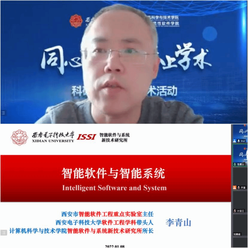 (通讯员 齐富、贠琳红)为丰富疫情期间大学生的学习生活,增强大学生对科学研究的认知,加深对研究生学习生涯的了解,激励大学生勤于思考、善于创造、勇于实践,引导学生树立学习目标、制定生涯规划,2022年1月8日下午,best365手机版官方网站面向本科生在线举办了第三场科研育人系列学术活动之本科生系列报告会,邀请学院党委书记、智能软件与系统新技术研究所所长李青山教授,计算理论与技术研究所副所长王小兵副教授介绍科学研究及研究生培养情况。学院近二百名本科生线上参会,会议由智能软件与系统新技术研究所副所长李瑞教授主持。