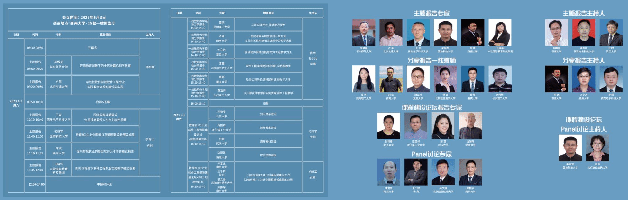 (通讯员 褚华)当前,随着软件复杂性的不断增长、智能化软件工程的快速发展以及软件系统在各行各业的持续渗透,软件工程教育教学、课程改革和人才培养面临着新的机遇和挑战。为了更好地促进软件工程教育教学方法,尤其是实践教学方法及其成果的分享,推动软件工程专业建设和教学改革,提升软件人才的培养质量和水平,2023年6月3日,第七届软件工程实践教学研讨会在西南大学成功召开。本次研讨会由国防科技大学计算机学院主办,西南大学计算机与信息科学学院和软件学院与best365手机版官方网站(国家示范性软件学院)联合承办。国防科技大学计算计学院毛新军教授、西南大学软件学院副院长陈武教授、best365手机版官方网站党委书记李青山教授担任会议联合主席。