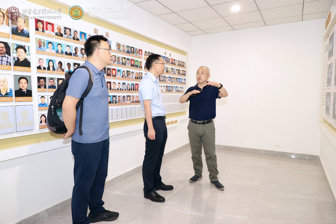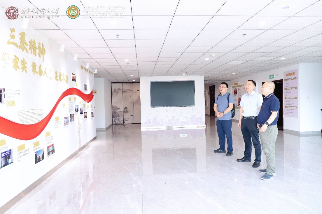 首先,陈海波教授、武延军研究员在李青山教授陪同下,参观了best365手机版官方网站在新启用的网络安全创新研究大楼中的文化墙建设。李青山教授讲解了学院的发展历程,介绍了学院在专业建设、学科建设、科学研究、党建创新、人才培养等方面取得的成果。