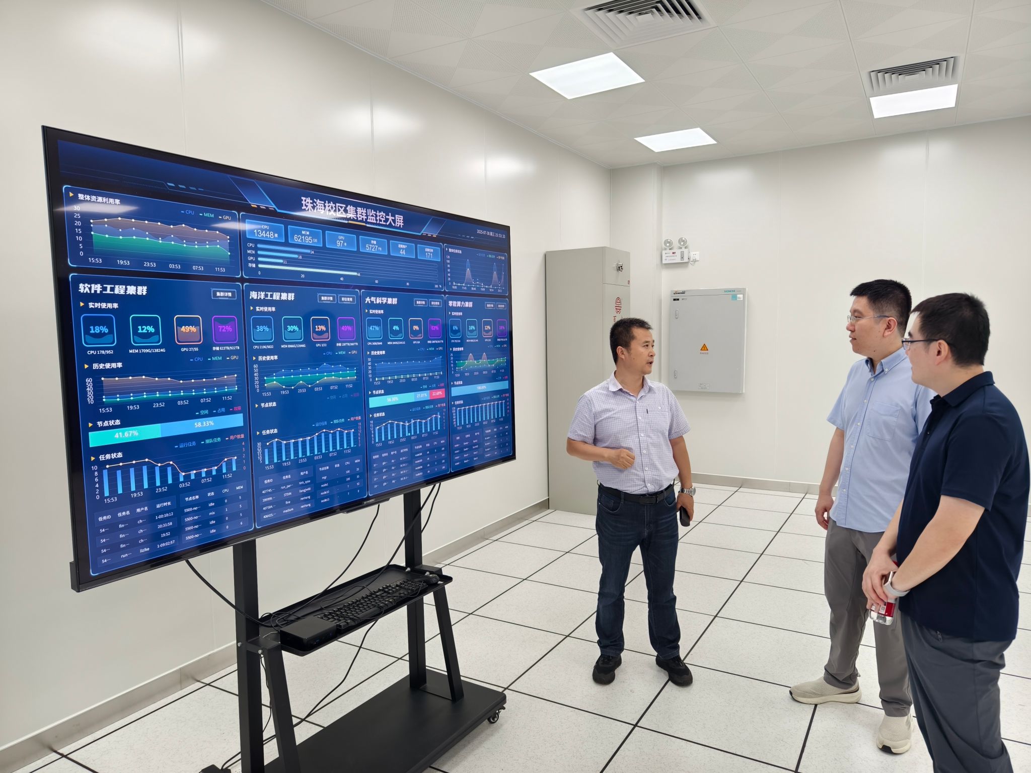 会后,调研组参观了中山大学珠海校区的超算中心以及相关科研实验室、公共实验室及创新应用开发工作室。