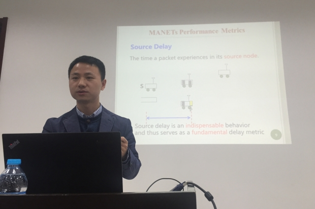 在讲座中,高俊涛主要分享了在分析移动自组织网络(MANETs)性能时两类行之有效的数学分析方法,即矩阵分析方法和李亚普洛夫理论(Lyapunov Theory),并通过对具体MANETs性能的分析展示了如何使用这两类分析方法。为促进具有一定服务质量(QoS)的MANETs在实际场景中的应用,理解端到端的时延性能起到关键作用。然而,节点的移动性、共享信道的干扰和冲突以及变化的路由策略导致的网络高动态特点使得分析MANETs端到端的性能异常困难。高俊涛在讲座中回顾了对端到端时延分析的已有工作,这些工作主要分为时延上界的分析和对时延的近似两类,都在评估MANETs性能时引入了不容忽视的误差。这些误差不利于理解MANETs的性能,也就在一定程度上阻碍了MANETs在实际环境中的开发和应用。高俊涛以他研究的MANETs场景为背景展示了如何利用矩阵分析方法求解端到端时延的精确解,从而能够极大的降低误差。对于评估MANETs性能的另外一个指标—吞吐量,高俊涛分享了如何理解吞吐量上界以及如何用李亚普洛夫理论进一步缩小吞吐量的上界。