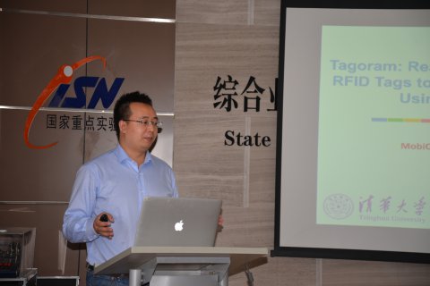 应计算机学院姚青松老师邀请,清华大学杨磊博士于11月5日下午访问西电,并在新科技楼1012报告厅作了题为《Tagoram: Real-Time Tracking of Mobile RFID Tags to High-Precision Accuracy Using COTS Devices》的报告。报告吸引了学院青年骨干教师和博士、硕士研究生共100余人参加。副院长沈玉龙主持了报告会。