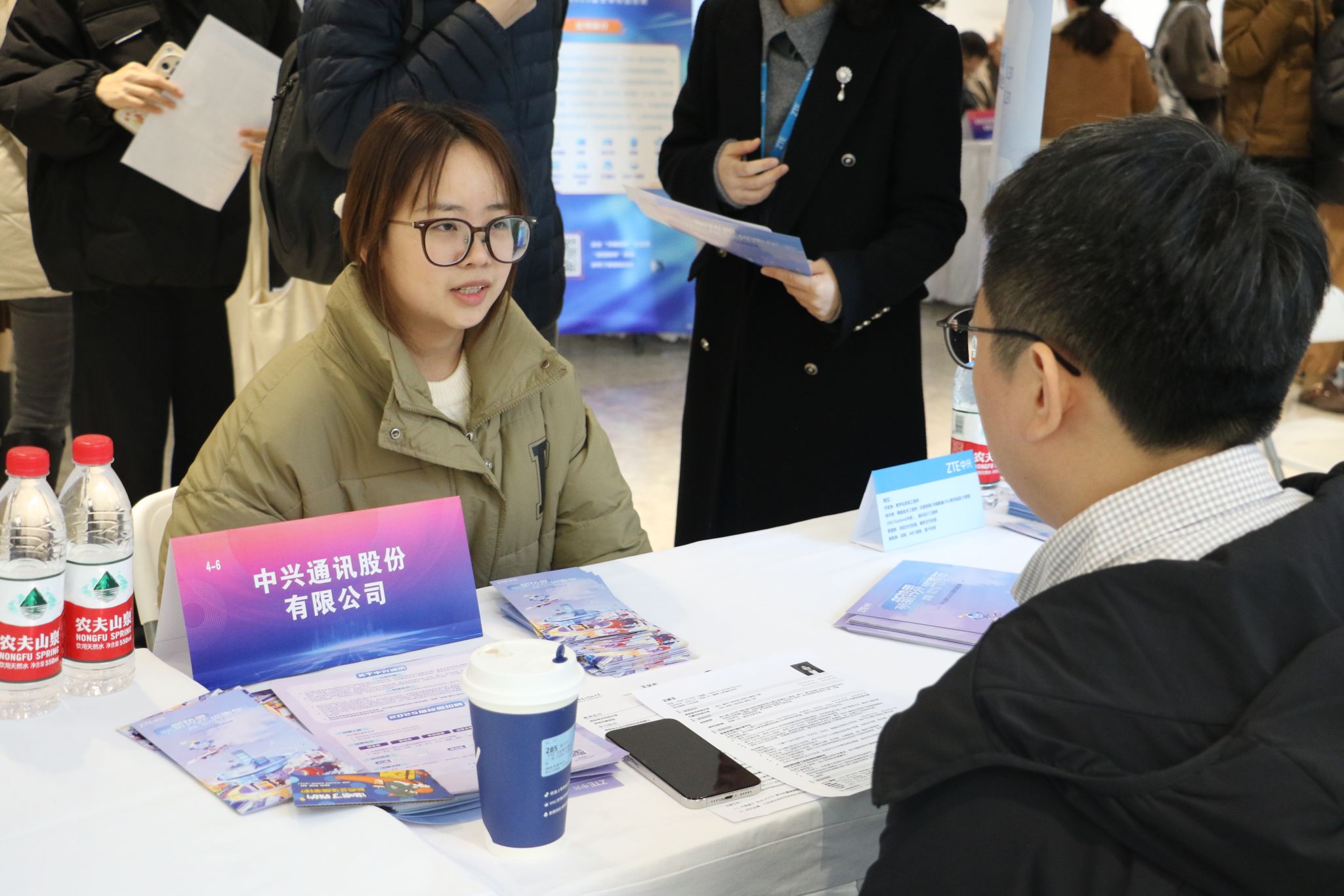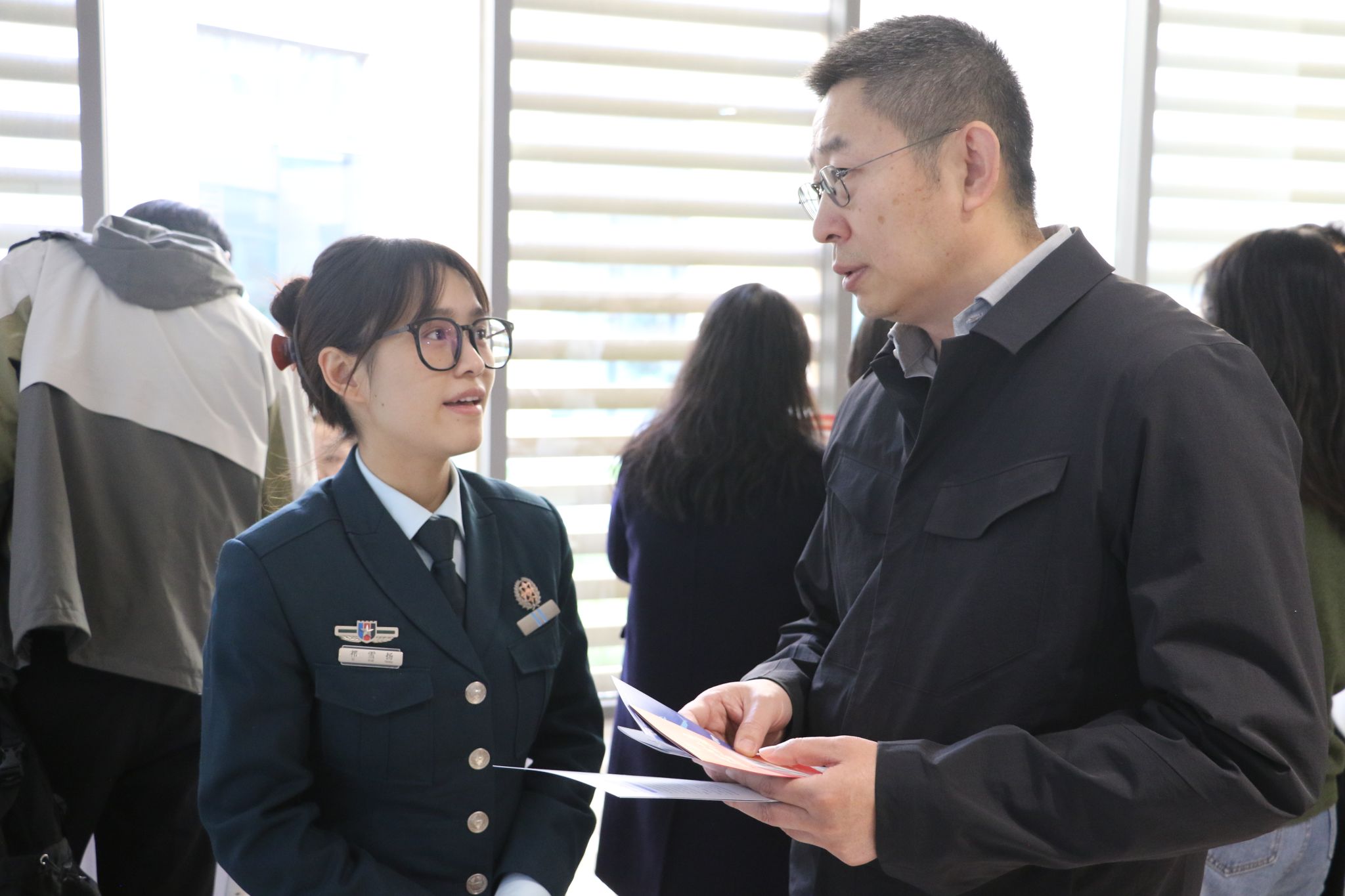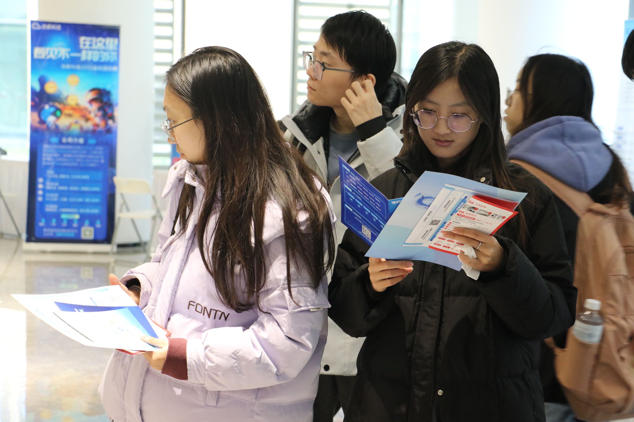 初冬的下午室外阳光明媚,室内的双选会现场也是人头攒动、气氛热烈。毕业生们手持精心准备的简历,穿梭于各个展位之间,积极与用人单位代表交流,了解招聘需求,并投递自己的简历。用人单位代表也热情接待每一位前来咨询的毕业生,详细介绍公司的企业文化、发展前景和招聘岗位信息,为毕业生们提供了宝贵的就业指导和建议。