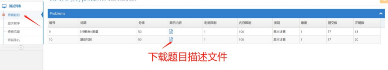 点击导航栏的“查看结果”菜单可以查看评判结果,如下图所示。