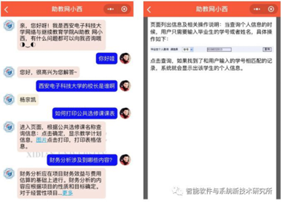 系统实现针对特定领域知识的人机对话和智能问答交流。系统核心模块包括:①课程知识抽取模块,从授课知识、课程作业和考试等文字内容中抽取中与课程内容相关的实体和关系。②课程知识图谱模块,按照课程知识关系构建课程知识图谱,实现了关联数据的语义图存储模式。③问答交互模块,负责接收学生问题并将问题转换为QA列表相似性匹配问题,并将问题和答案存储到QA列表中供后续查询使用。